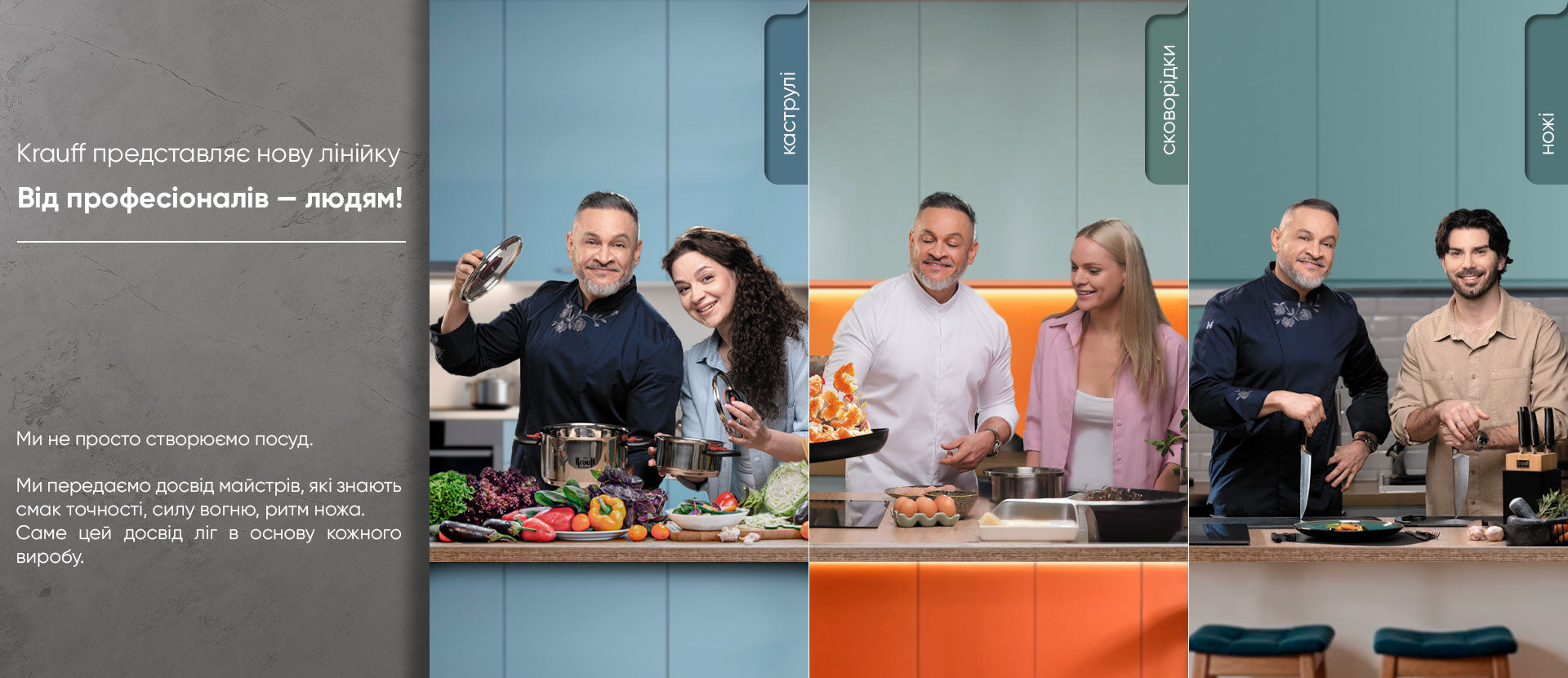 Амбасадори Krauff — це натхненники, які не просто готують, а передають філософію кухні. Вони показують, як важливо мати інструменти, що відповідають найвищим стандартам і не підводять у вирішальний момент.