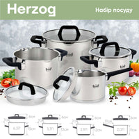 The Herzog saucepan set is the perfect combination of quality, style and functionality. It will become the pride of your kitchen and an additional source of inspiration for your creative cooking. We invite you on a taste expedition with the Herzog saucepan set - your reliable partner on the way to culinary heights.