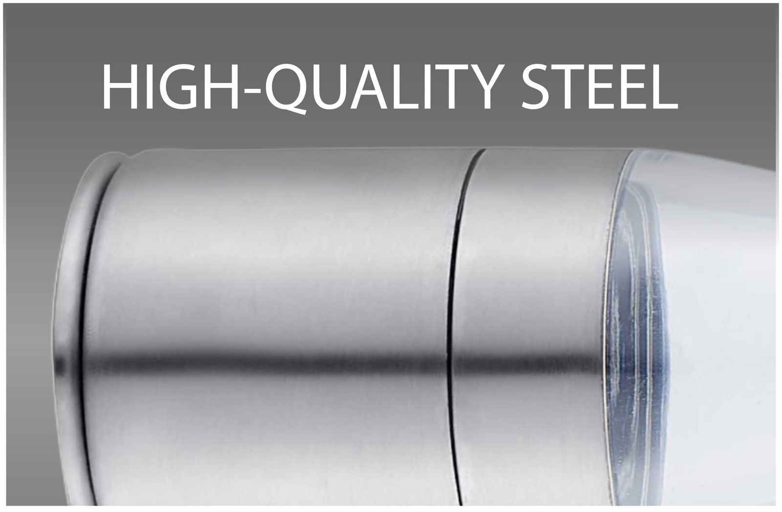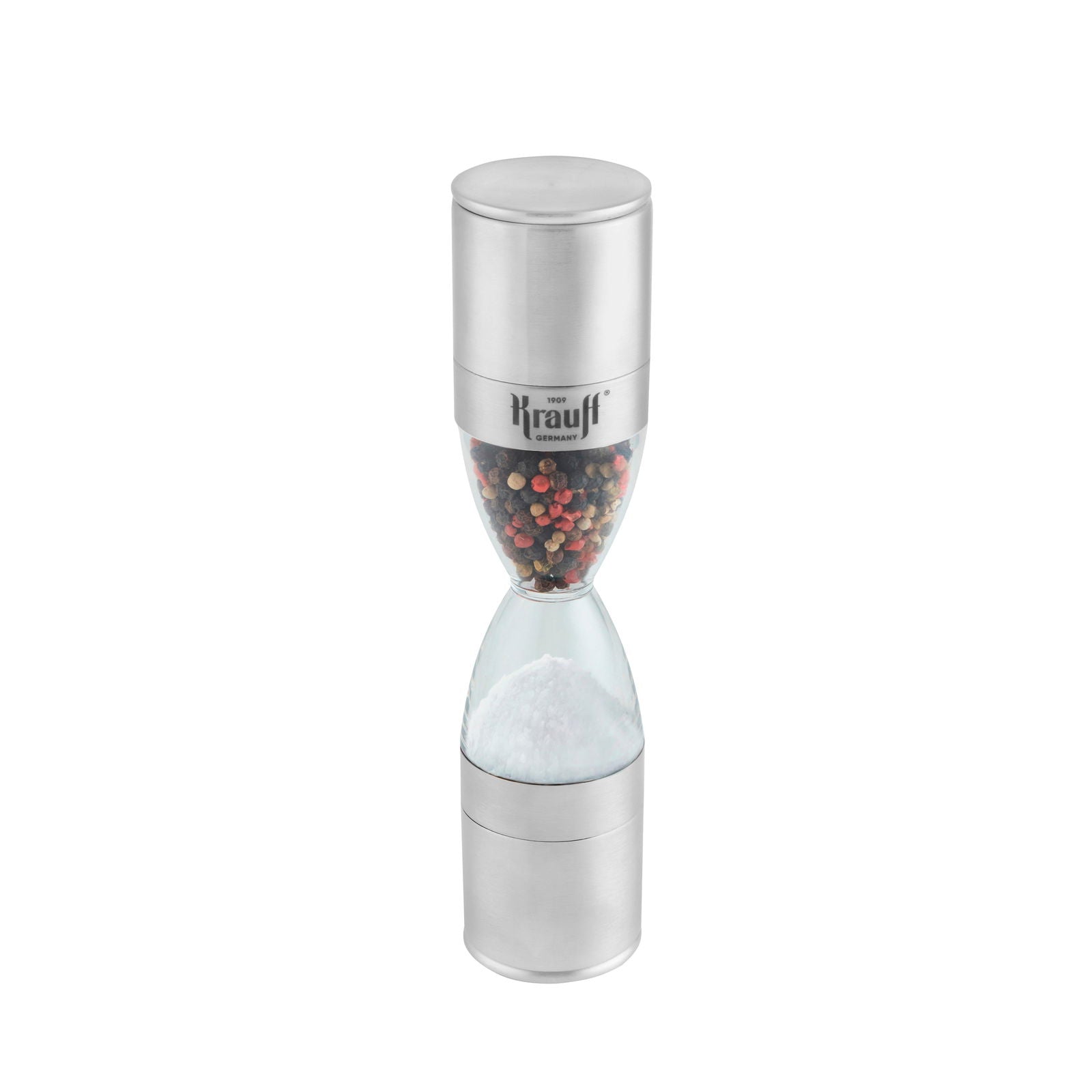 Прозора ємність виготовлена з міцного термостійкого скла, що дозволяє контролювати кількість спецій. Верхня частина з нержавіючої сталі забезпечує довговічність і зносостійкість навіть при інтенсивному використанні.