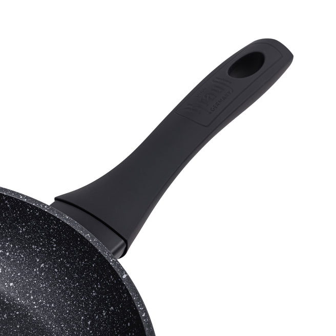 Суцільнометалева ручка не деформується, витримує високі температури і зручно лежить у руці, додаючи сковороді професійного вигляду.
