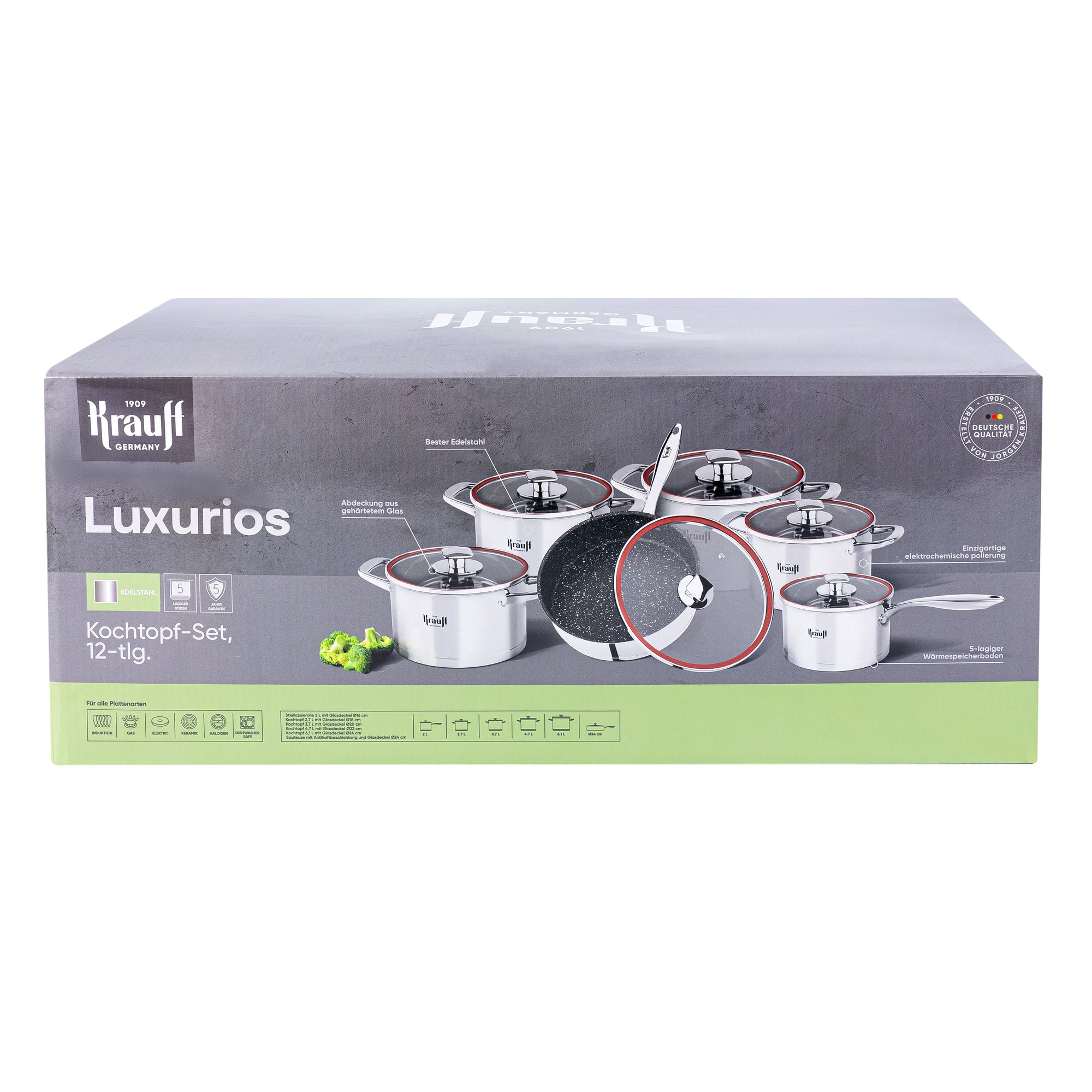 Цей набір із 5 каструль, сотейника та 6 скляних кришок — ідеальне рішення для тих, хто цінує практичність і хоче мати під рукою все необхідне для варіння, тушкування, смаження та готування на пару.ії.