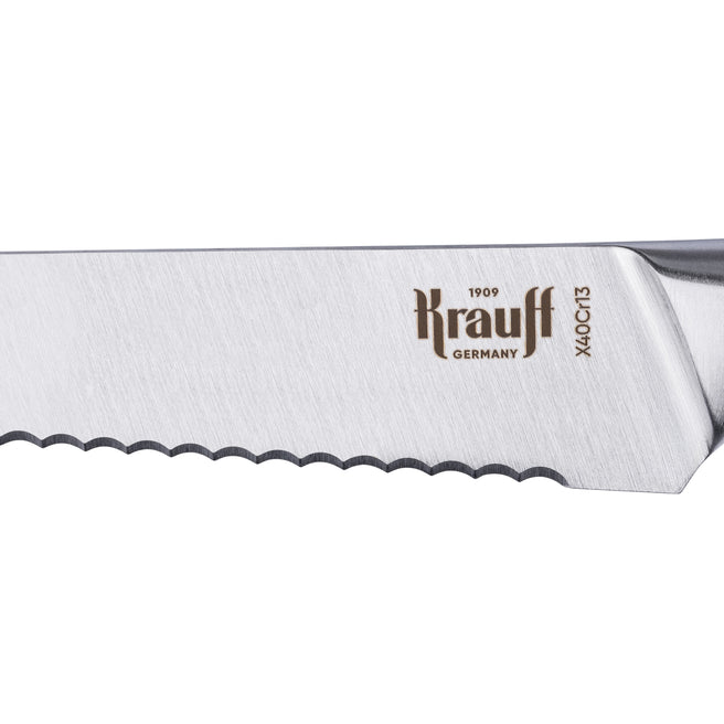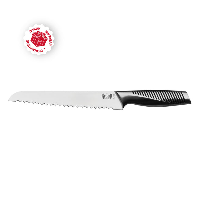 Ніж для хліба Krauff Profi 20,8 см — це інструмент, створений для тих, хто цінує ідеальну нарізку хлібобулочних виробів. Його зубчасте лезо дозволяє легко розрізати як хрусткі багети, так і м'який хліб, не зминаючи його.
