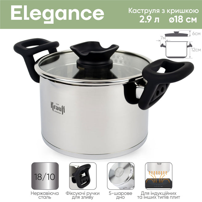 Каструля Elegance 2,9 л — зручність для щоденного приготування