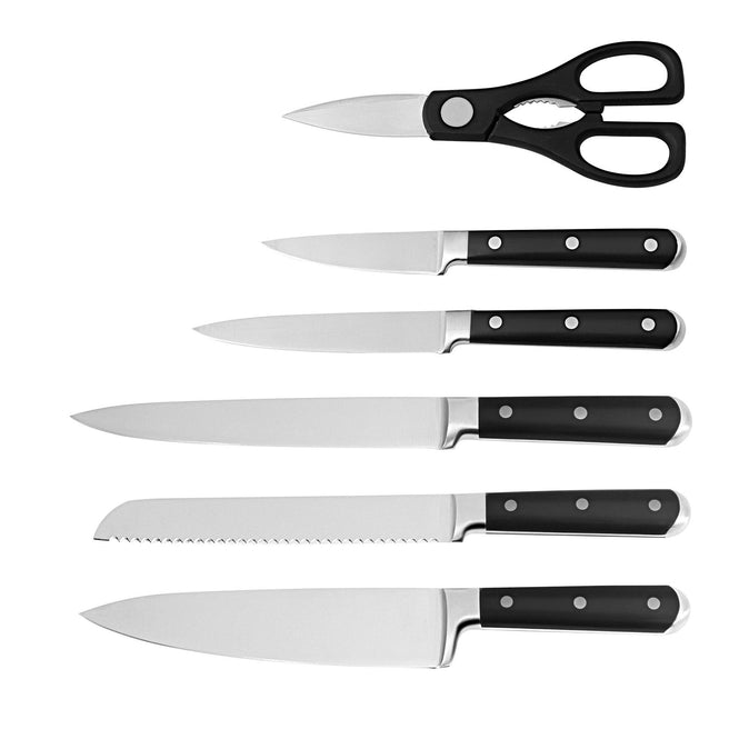 Усі ножі виготовлені з високоякісної нержавіючої сталі X30Cr14, яка забезпечує довговічну гостроту, стійкість до корозії та зручне заточування. Ергономічні ручки добре лежать у руці та не ковзають навіть у вологому середовищі.