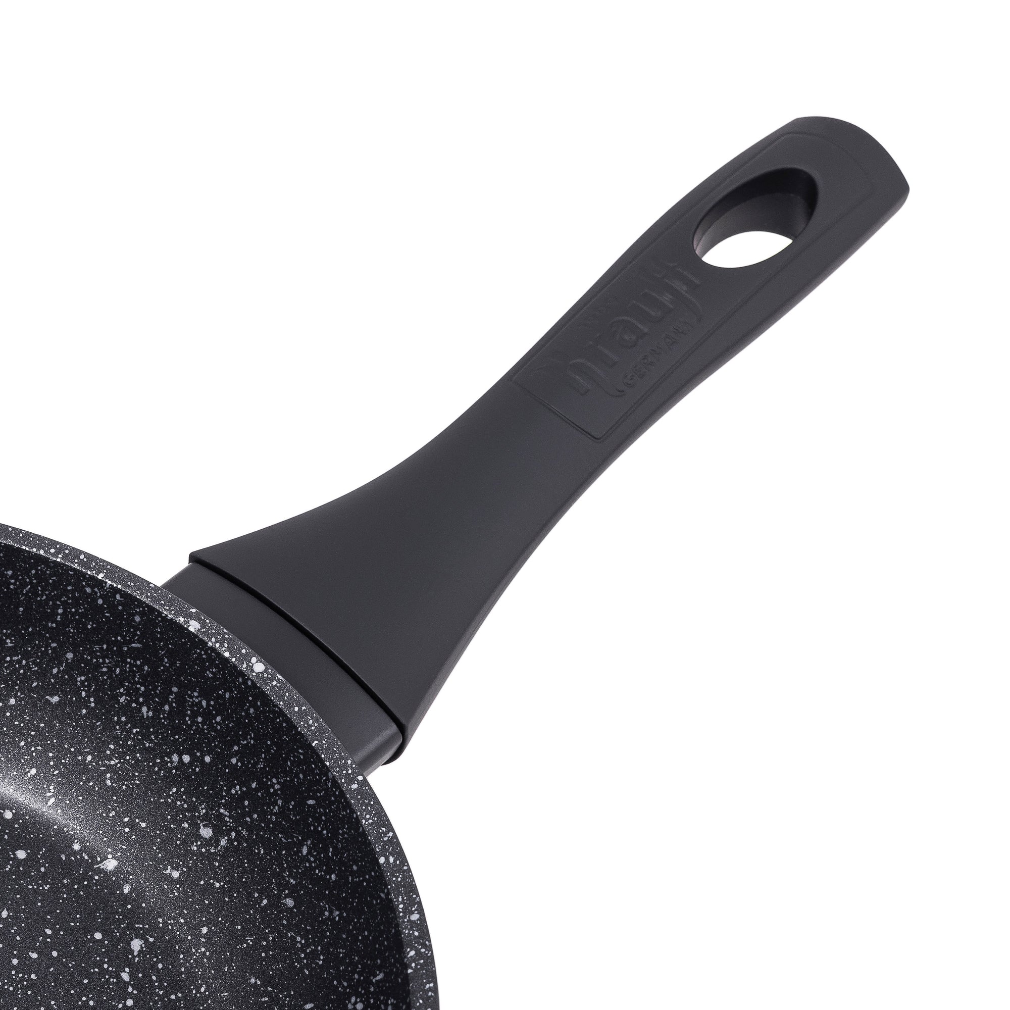 Ручка виготовлена з термостійкого бакеліту — вона не нагрівається навіть під час тривалого готування. А приємне soft-touch покриття забезпечує м’яке, комфортне зчеплення з рукою без ковзання. Зручно тримати, легко керувати.