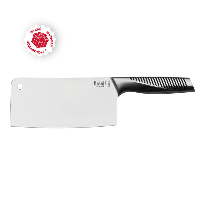 Кухонна сокира Krauff Profi 17,5 см — це інструмент, створений для професіоналів та аматорів, які цінують ефективність і надійність. Її міцне лезо та збалансована конструкція дозволяють легко обробляти великі шматки м'яса, рибу та кістки, забезпечуючи чисті зрізи без зайвих зусиль.