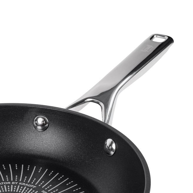 Корпус из кованого алюминия равномерно распределяет тепло по всей поверхности, обеспечивая стабильный результат без горячих зон. Блюда готовятся быстро, сохраняя сочность и вкус.