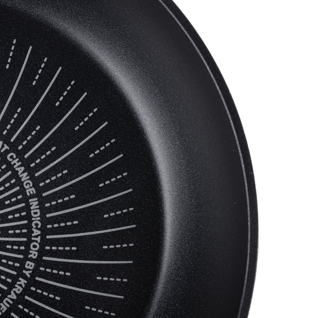 Корпус изготовлен из кованого алюминия, что обеспечивает быстрый и стабильный нагрев. Продукты готовятся умеренно, не пригорают и сохраняют естественный вкус.